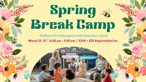 Looking for childcare for your kindergarten and elementary student during spring break? We've got you covered! For the week of March 23-27 we'll have age appropriate childcare led by an elementary school teacher to keep them engaged and growing while they're out of school. Spots are limited so make sure to register today.